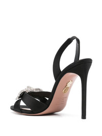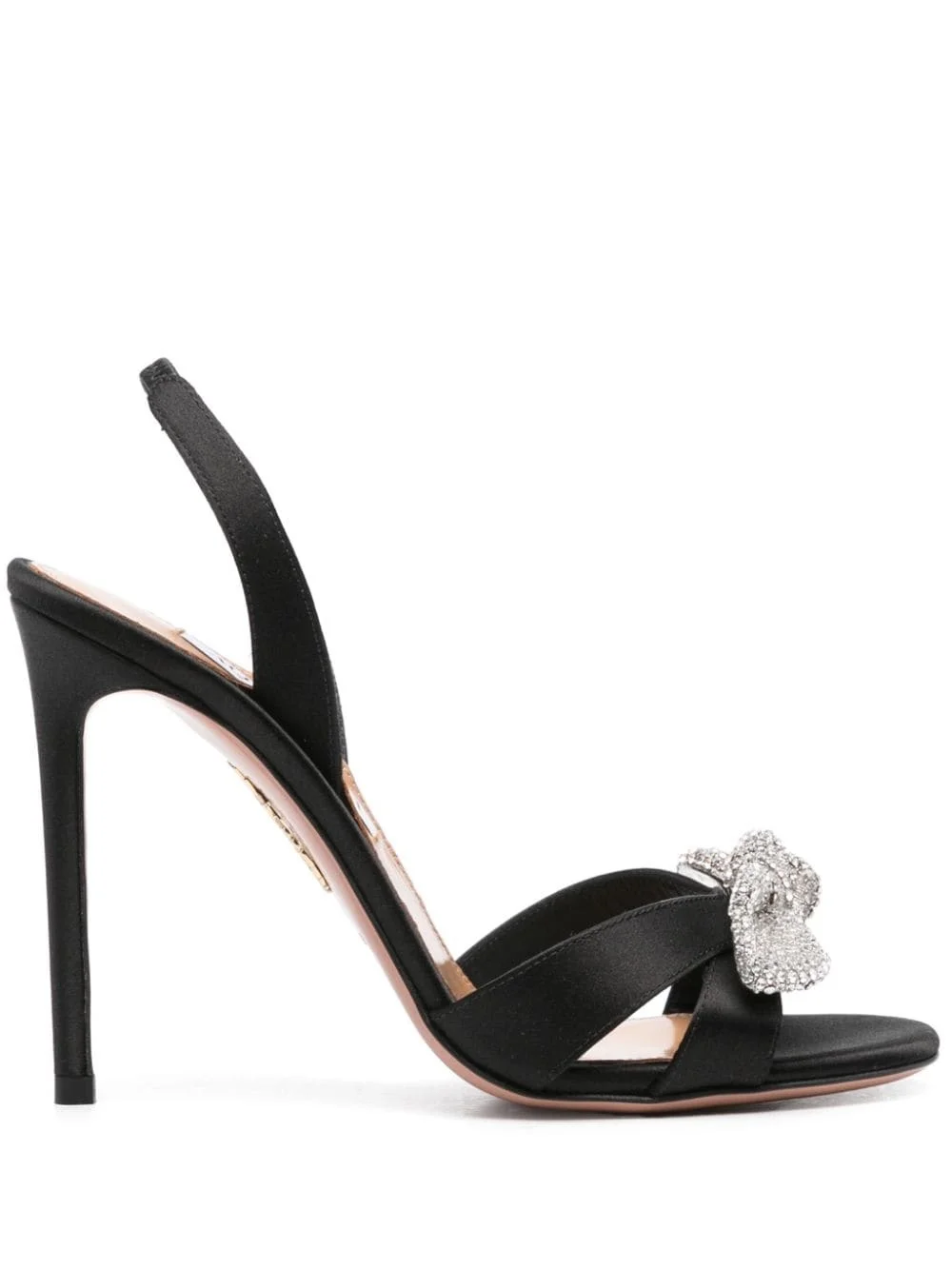 105mm Very Bow Tie Crystal sandals Highlights - Black - Satin finish - Almond open toe - crystal-embellished bow - Branded leather insole - Rubber sole - Stiletto heel - Elasticated slingback strap - This piece comes complete with a protective dust bag. Made in Italy Composition Outer: Satin 100% Lining: Satin 100%, Calf Leather 100% Sole: Calf Leather 100%, Rubber 100% SIZE & FIT Measurement HEEL 4.13 in(10.5 cm)