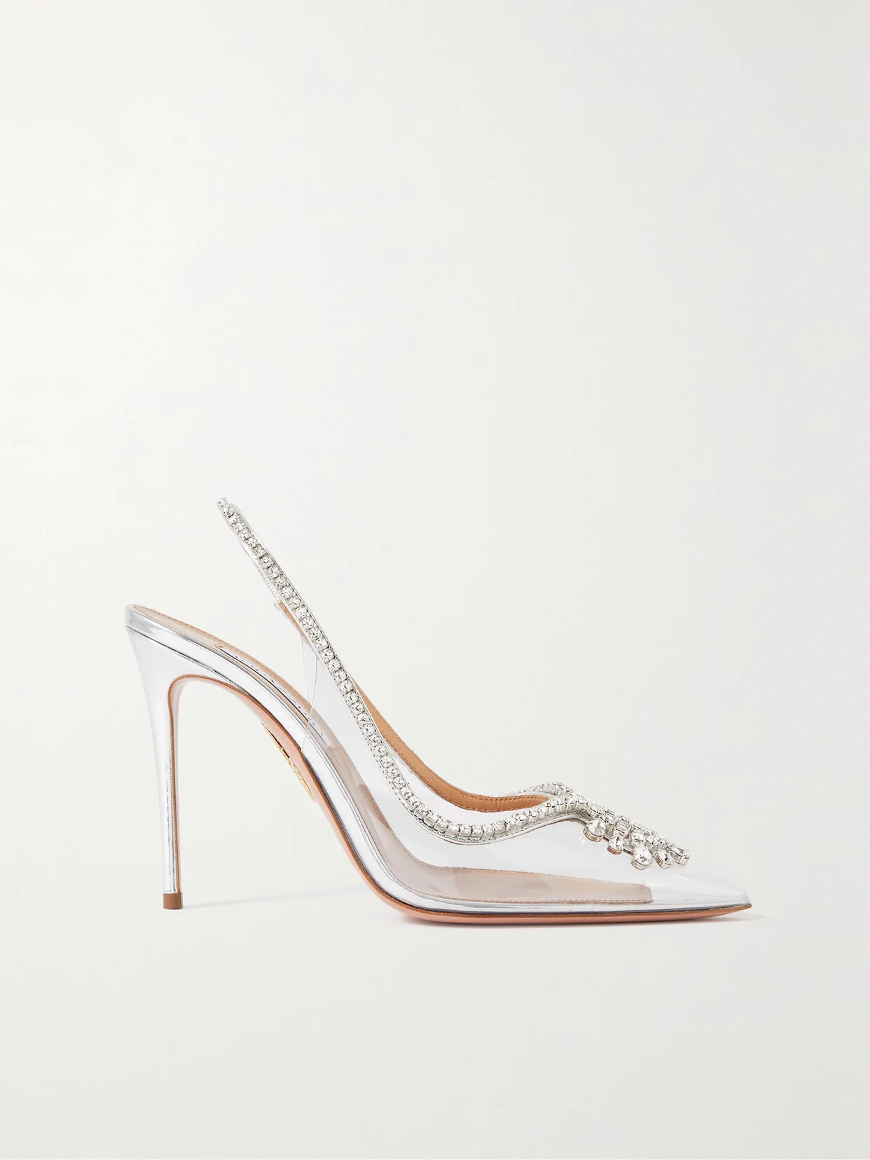 Seduction 105 Crystal-embellished Metallic Leather And Pvc Slingback Pumps