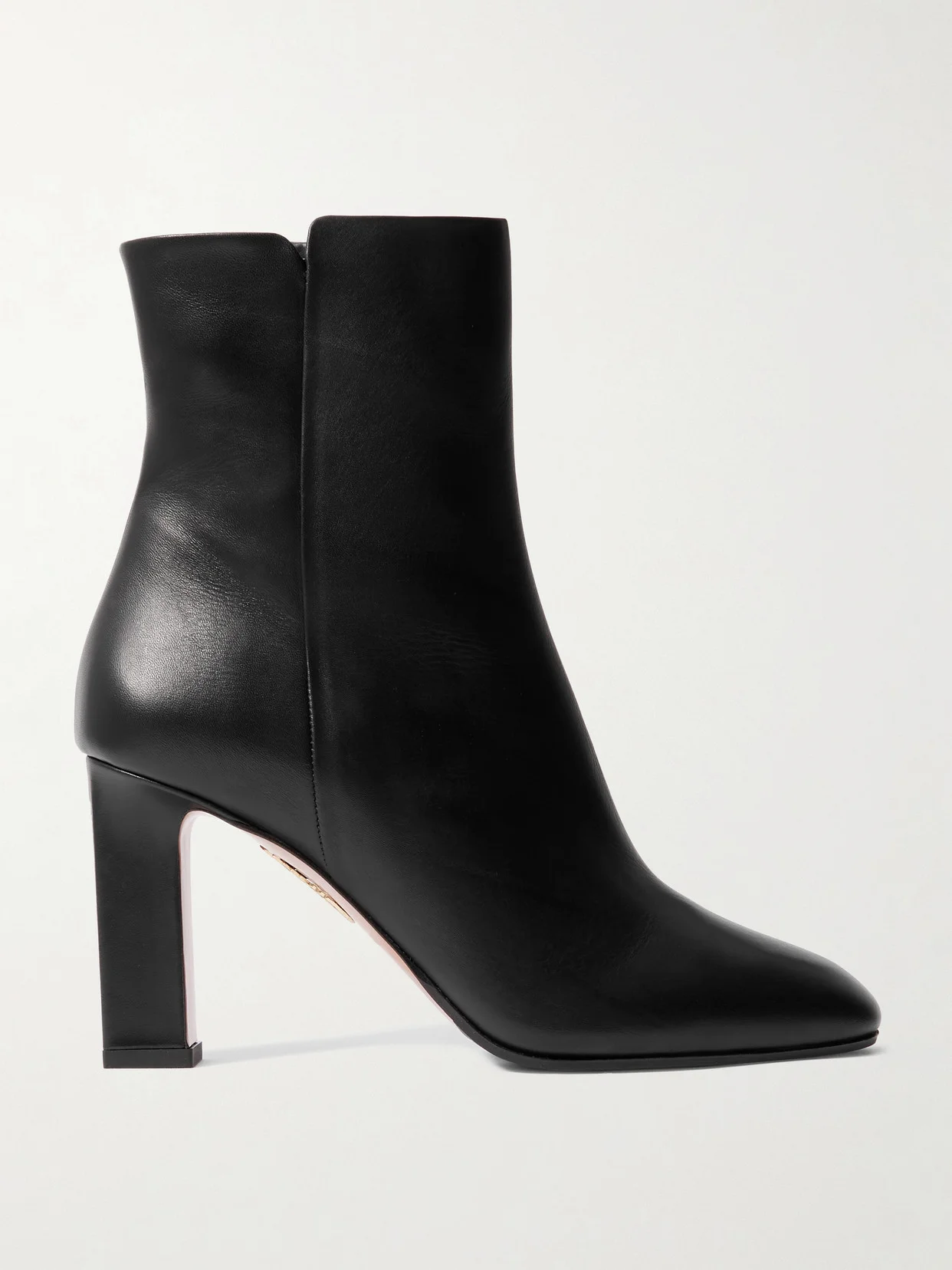 A pair of black ankle boots is a wardrobe staple, and Aquazzura's 'Sellier' version is as refined as they come. They've been crafted in Italy from smooth leather and have rounded toes and sleek block heels with 85mm lift. Wear yours with anything from denim to tailoring.
