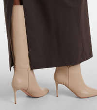 An Aquazzura shoe is a labor of love: a single pair can include over 30 components, each of which is hand-assembled by skilled artisans. The Sellier knee-high boots are crafted from supple leather and set on 85mm stiletto heels. Product Details - Upper: calf leather - Lining: leather - Sole: leather insole and sole - Color: beige - Toe shape: round toe - Made in Italy - Includes: dust bag, shoe box - Designer color name: Light Taupe - Item color: beige - Item number: P01137988 Size & Fit - True to size - European sizes - 8,5cm-3.5" heel - 38cm-15" shaft height (size EU 38) - 37cm-14.5" shaft width (size EU 38) - shaft width measured on largest part of boot