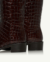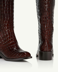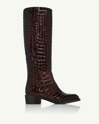 Combining a glossy finish with bold crocodile-print leather, our brown Sellier Boot Flats are a lavish addition to your shoe selection. They each feature a round toe, a wide-cut shaft, and a 40 mm heel. Notice the delicate metal chain around the sole that lends them an unexpected touch of luxury. Pull on Round toe Mid heel Padded leather insole Signature logo detailing Product: SELFLAB0-CCX-CCO Made in: Italy