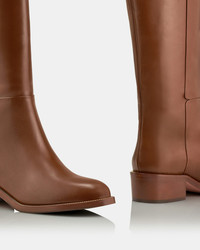 The easiest way to upgrade your cold-weather wardrobe: our Sellier Flat Boots. They're crafted from 'Cinnamon' leather with a slightly burnished finish and feature a round toe, a wide-cut shaft and a 40 mm heel. Notice the delicate metal trim around the sole that lends them an unexpected touch of luxury. Pull on Round toe Mid heel Padded leather insole Signature logo detailing Product: SELFLAB0-BRF-993 Made in: Italy