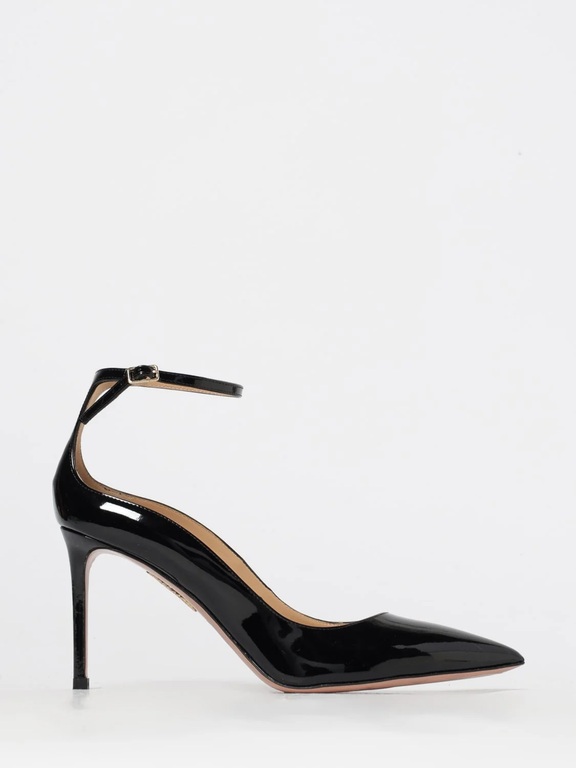 DESCRIPTION - Style: Elegant - Occasion: Ceremony and cocktail, Evening and party - Lining: Leather, With logo - Toe: Almond - Ankle: With strap - Sole: Leather - Heel: Tacco alto a stiletto - Materials: Leather - Pattern: Plain-colored DETAILS AND CARE Composition 100% Pelle SIZE AND FIT Sizes Heel: 10,5 cm Designer code: LVAMIDP0PAT 000 Giglio Code: G35774 Designer: Aquazzura Collection: Aquazzura Woman Category: Shoes Aquazzura