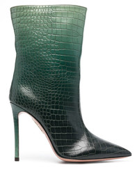 So Matignon 105mm ankle boots forest green/dark green calf leather faded effect embossed crocodile effect pointed toe slip-on style branded insole high 105mm stiletto heel Made in Italy Composition Sole: Calf Leather 100% Lining: Sheep Skin/Shearling 100% Outer: CALFSKIN 100% SIZE & FIT Measurement CIRCUMFERENCE 11.81 in(30 cm) HEEL 4.72 in(12 cm) HEIGHT 7.08 in(18 cm) Sole height 0.39 in(1 cm)