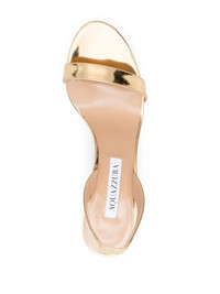So Nude block-heel sandals An iconic style from Aquazzura, the So Nude sandals are reimagined for SS23 with a comfortable block heel. Crafted in Italy from polished soft gold calf leather, the minimal design is finished with a slingback strap that secures the foot. Made in Italy Composition Outer: Calf Leather 100% Lining: Calf Leather 100% Sole: Calf Leather 100% SIZE & FIT Measurement HEEL 3.54 in(9 cm)