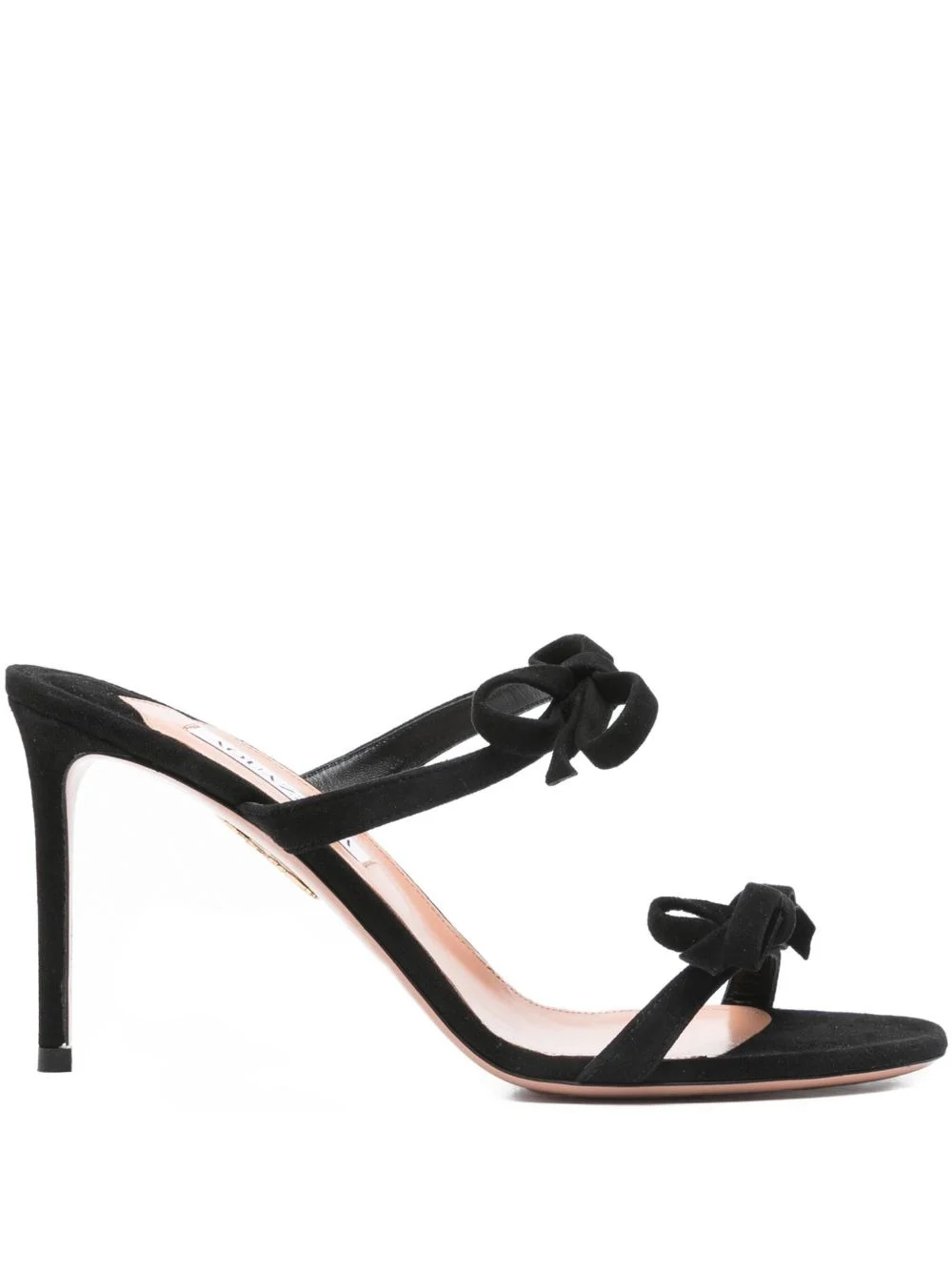 100mm Soave bow-embellished stiletto sandals Highlights - Black - Suede leather - Stiletto heel - Double bow embellishment - Open toe - Slip-on style Made in Italy Composition Lining: Calf Leather 100%, Calf Suede 100% Outer: Calf Suede 100% Sole: Calf Leather 100%, Rubber 100% SIZE & FIT Measurement HEEL 3.93 in(10 cm)