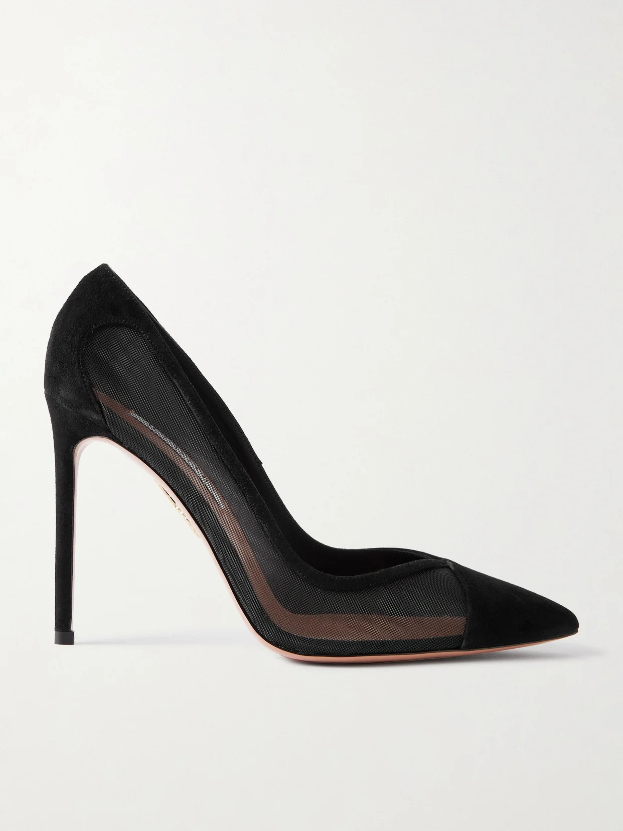 Aquazzura's 'Studio' pumps strike a perfect balance between sophistication and allure. Crafted in Italy from supple suede, they have sheer mesh side panels that lend subtle texture to the minimalist design. The pointed toes and slender 105mm heels create a refined, elongating effetct.