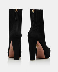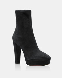 Our Saint Honore' Bootie Plateau is the perfect staple to add to your wardrobe. Crafted in Italy from our luxurious black suede, this bootie possesses a feminine pointed toe and a back zipper for ease of dress. Its chunky mid heel is balanced with its platform sole for extra stability. Our Saint Honore' Bootie Plateau is the perfect staple to add to your wardrobe. Crafted in Italy from our luxurious black suede, this bootie possesses a feminine pointed toe and a back zipper for ease of dress. Its chunky mid heel is balanced with its platform sole for extra stability. Product: SHOMIDB3-SUE-000 Made in: Italy