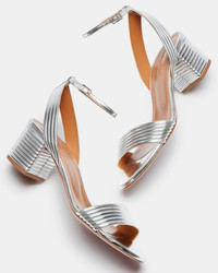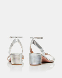 Our coveted Sundance is reinvented in a mid-heel sandal. Made in Italy from sleek mirrored leather in shimmery silver, pair is a standout with its quilt-like effect across the block heel and delicate straps. Team yours with a flowy dress or ankle-length denim. Adjustable buckle closure Covered block heel Leather lining Leather insole with Aquazzura stamped in gold Leather sole with embossed Pineapple logo Product: SUDMIDS1-LAM-CCC Made in: Italy