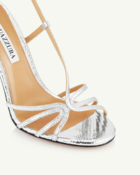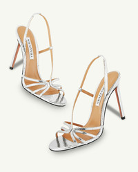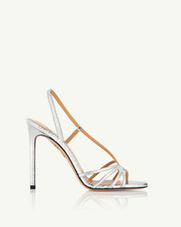With their sinuous curves and sharp 105 mm stiletto heels, the Talk To Me Sandals ooze modern sex appeal. Theyre made from supple leather, embossed with a glamorous snakeskin texture, and have slim straps that frame your foot. The lustrous silver hue complements countless party outfits. Slingback strap Stiletto heel Padded leather insole Signature logo detailing Product: TTMHIGS0-MSK-CCC Made in: Italy