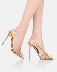 With their sinuous curves and sharp 105 mm stiletto heels, the Talk To Me Sandals ooze modern magnetism. Theyre made from supple leather, embossed with a glamorous snakeskin texture, and have slim straps that frame your foot. The golden hue will add a precious twist to countless party outfits. Slingback strap Stiletto heel Padded leather insole Signature logo detailing Product: TTMHIGS0-MSK-SOG Made in: Italy