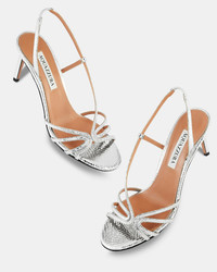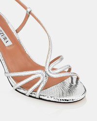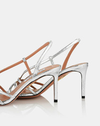 Destined to be your style saviour, season after season, the Talk To Me Sandal features a strappy 90s-style silhouette that encases the foot, elongating your legs. This shimmering metallic pair is crafted from silver leather with a snakeskin texture and set on 75 mm stiletto heels for moderate lift. Slingback strap Stiletto heel leather insole Signature logo detailing Product: TTMMIDS1-MSK-CCC Made in: Italy