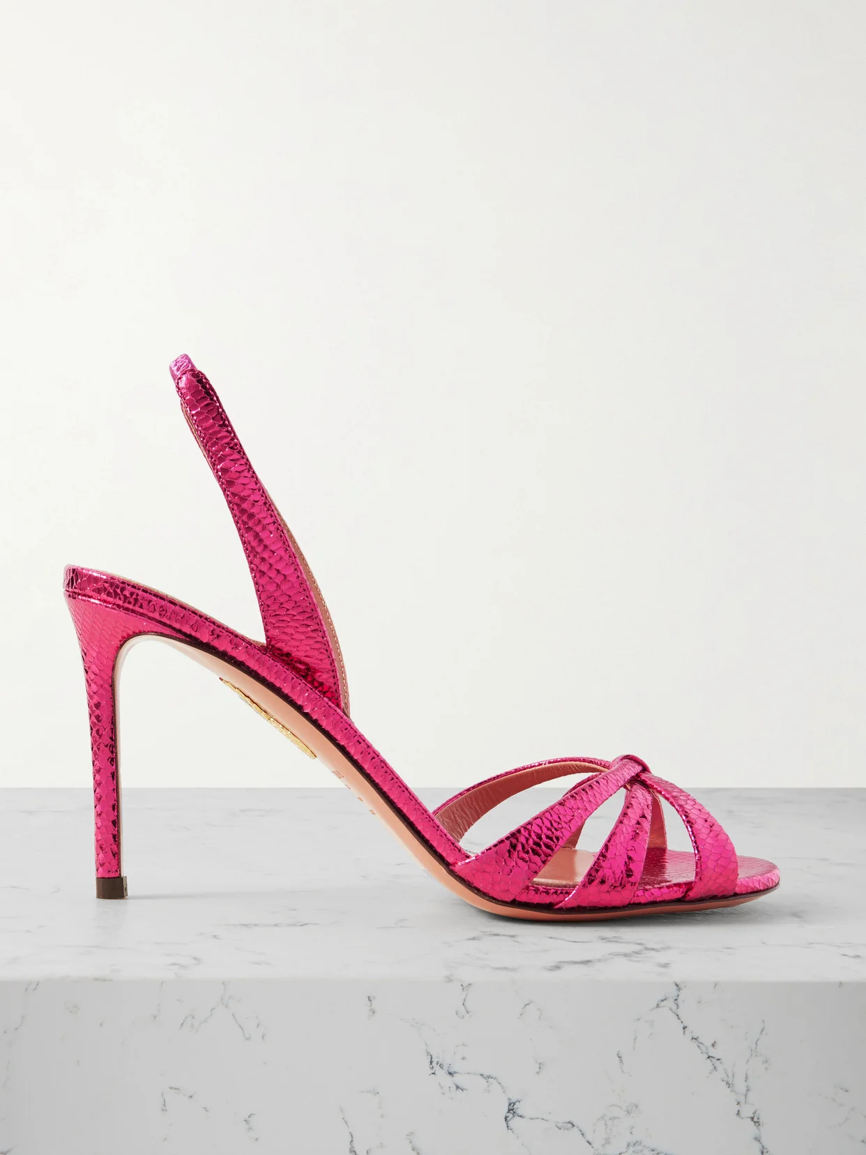 Aquazzura's shoes are designed in the label's Florence headquarters and then brought to life using traditional techniques in Tuscan workshops. These elegant ‘Tati' slingback sandals are made from metallic snake-effect leather with slim, overlapping straps and 85mm stiletto heels.