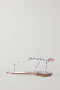 EDITORS'NOTES Aquazzura's 'Tequila' sandals are glamorous without sacrificing comfort. Made in Italy and trimmed with silver leather, they have slim clear PVC straps that shimmer with faceted crystals. The cushioned footbed is set on a slight heel. SIZE & FIT - Fits true to size, take your normal size - Italian sizing DETAILS & CARE - Slight heel - Clear PVC, silver leather (Lamb) - Buckle-fastening ankle strap