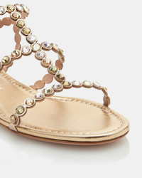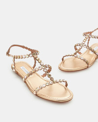 Add an extra dose of sparkle to any ensemble. Our Tequila Flat Sandals are crafted in Italy from polished laminated nappa in glossy light copper and embellished with glittery gems across the straps. The metallic shade pairs perfectly with everything from denim to dresses. Flat heel Open toe Padded leather insole Leather insole with Aquazzura label Product: TQLFLAS1-NPL-LCO Made in: Italy