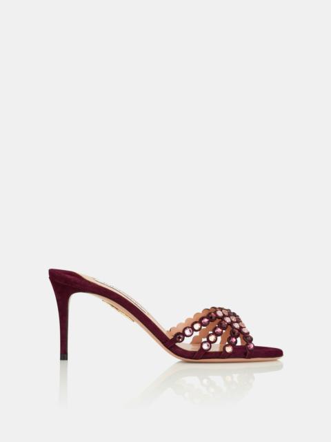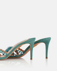 The Tequila Mule returns in a fresh, seasonal mood, crafted from teal green suede and featuring scalloped straps embellished with radiant tonal crystals. This minimal yet glamorous style sits atop a comfortable mid heel, effortlessly bridging the gap between evening elegance and after-dark allure. Perfect for making an entrance – and staying out late. Covered stiletto mid heel Open toe Slip on Signature logo detailing Product: TQLMIDM0-SUE-LGE Made in: ITALY
