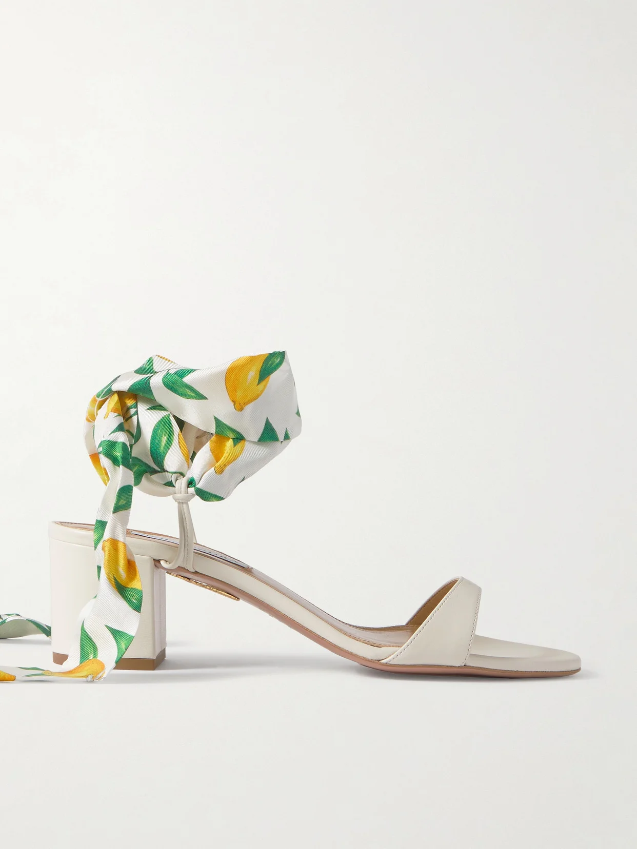 Twilly 50 Printed Silk Twill-trimmed Leather Sandals