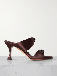 Aquazzura's sandals take their name from the artfully twisted straps. Crafted in Italy from satin, they have round, open toes and rest on fluted heels that offer 75mm of lift. Wear yours with a slinky slip dress. Size & Fit - Fits true to size, take your normal size - Italian sizing Details & Care - Heel measures approximately 75mm/ 3 inches - Dark-brown satin - Slips on