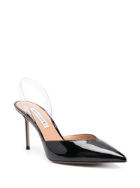 V Plexi 90mm slingback pumps from AQUAZZURA featuring black, calf leather, patent finish, pointed toe, slingback strap and high heel. Size & Fit Model Measurements: Bust: 0cm Height: 0cm Hips: 0cm Waist: 0cm HEEL: 9cm Fabric and Care Designer Style ID: VPSMIDL0PAP000 Designer Colour: 000 BLACK Composition: Sole: Calf leather 100%; Outer: Calf leather 100%, Pvc 100%; Lining: Pvc 100%, Calf leather 100%Made in Italy
