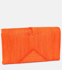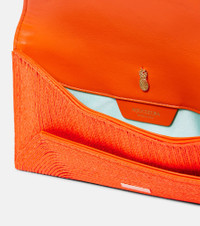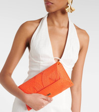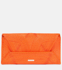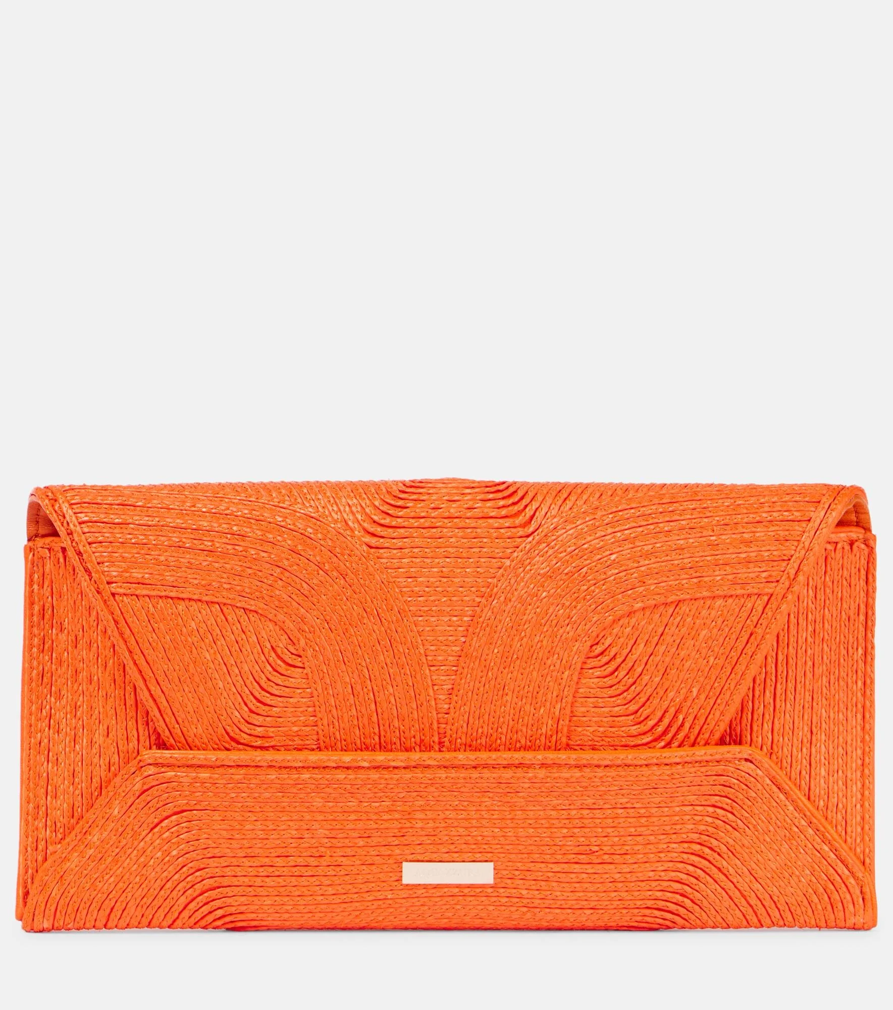 The Vacanza clutch from Aquazzura is aptly named for its escapist allure. Expertly crafted from raffia, it features a front flap closure and spacious pocket for all your getaway essentials. Product Details - Material: raffia - Lining: fabric - Made in Italy - Designer color name: Orange/Light Gold - Item color: orange - Trim: leather - Hardware color: gold - Item number: P01025767 Size & Fit - Height 13,5cm-5.5" - Width 26cm-10"