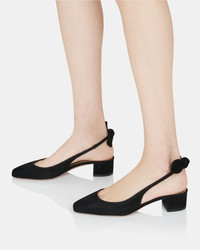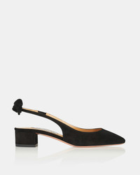 A fresh iteration of the classic silhouette – our Very Bow Tie Sling pumps instantly elevate all kinds of ensembles. Theyre crafted in Italy from smooth black suede with almond-shaped toes, 35 mm block heels and Aquazzuras signature bows at the back of each ankle. A failsafe foundation for tailoring, denim and dresses. Slingback strap Low heel Padded leather insole Signature logo detailing Product: VBTMIDL1-SUE-000 Made in: Italy