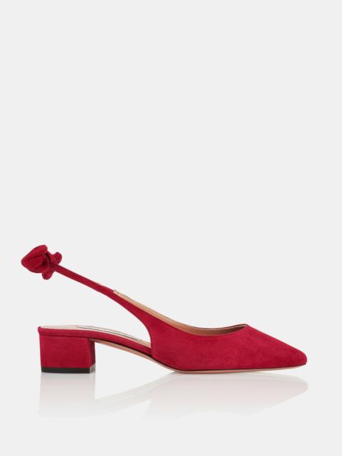 A fresh iteration of the classic silhouette – our Very Bow Tie Sling pumps instantly elevate all kinds of ensembles. Theyre crafted in Italy from smooth black suede with almond-shaped toes, 35 mm block heels and Aquazzuras signature bows at the back of each ankle. A failsafe foundation for tailoring, denim and dresses. Slingback strap Low heel Padded leather insole Signature logo detailing Product: VBTMIDL1-SUE-000 Made in: Italy