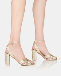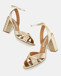 The shortcut to mastering the season's metallic trend – our Very Sundance Sandals are crafted from light-gold leather with a unique, dynamic texture that enhances the lustrous sheen. The elegant open-toe silhouette features side cutouts, dainty ankle straps and 85 mm block heels that offer height and stability. The perfect counterpart to flowy evening dresses. Adjustable buckle closure Block heel Padded leather insole Signature logo detailing Product: VSDMIDS0-LAM-FD5 Made in: Italy