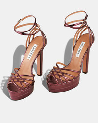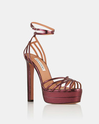 Our Wild Dream Plateau Sandals have a glamorous retro feel – courtesy of their towering 130 mm block heels and chunky platforms. Crafted from snake-effect metallic leather in rich burgundy, the slim straps lend a lightweight touch to this bold statement silhouette. Adjustable buckle closure Block heel Padded leather insole Signature logo detailing Product: WDRHIGB0-MSK-WIN Made in: ITALY