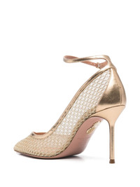 90mm Asha pumps Highlights - Gold-tone - Buckle-fastening ankle strap - High stiletto heel - Leather outsole - Pointed toe Made in Italy Composition Outer: Calf Leather 100%, Fabric 100% Lining: Rubber 100%, Calf Leather 100% Sole: Calf Leather 100% SIZE & FIT Measurement HEEL 3.54 in(9 cm)