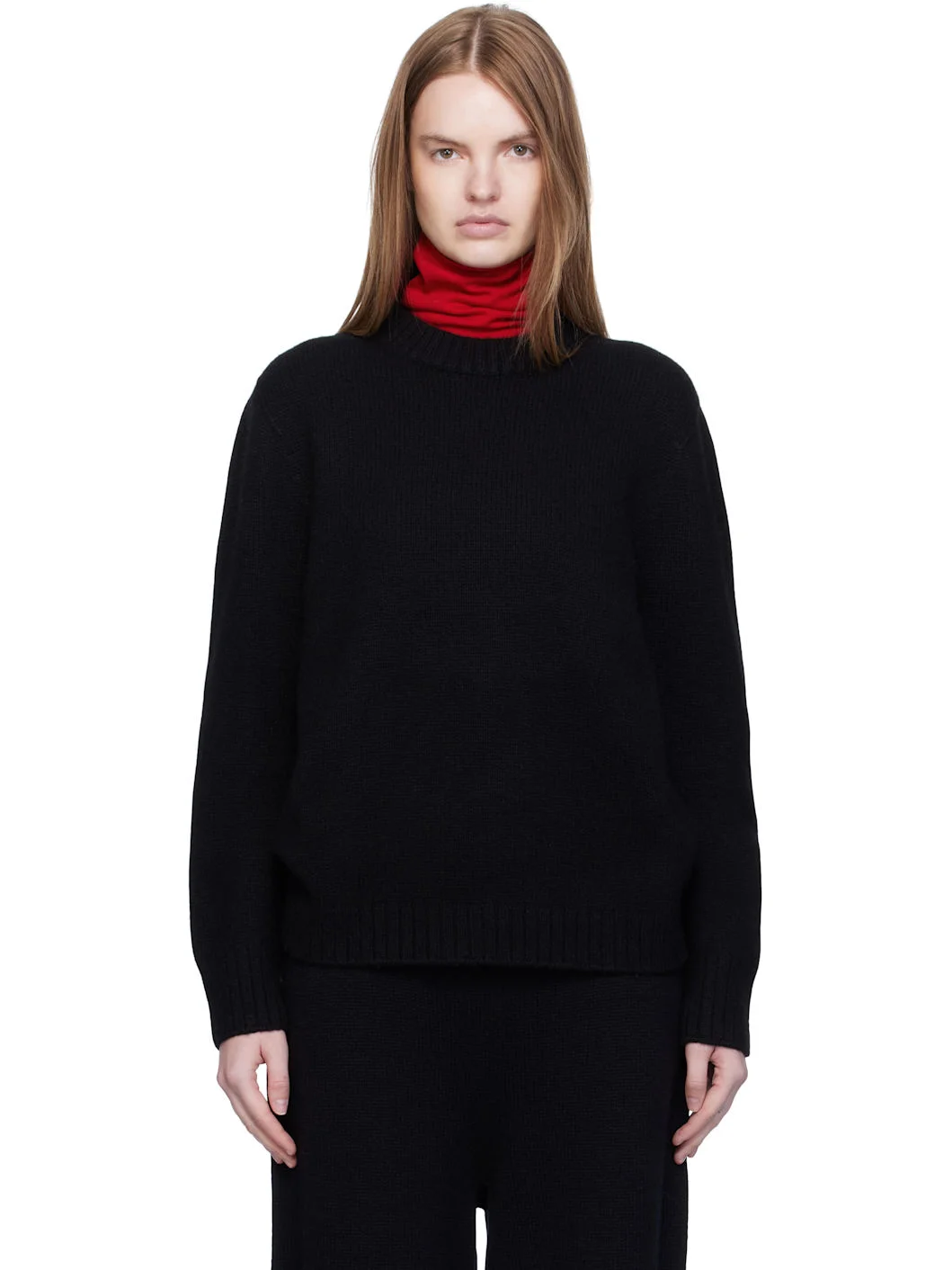 Knit cashmere sweater. · Rib-knit crewneck, hem, and cuffs · Dropped shoulders Supplier color: Black 100% cashmere. Made in South Korea 252373F096003