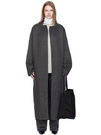 Handcrafted brushed wool- and baby alpaca-blend melton coat. · Stand collar · Open front · Seam pockets at waist · Dropped shoulders · Central vent at back hem · Unlined Supplier color: Grey 43% wool, 32% baby alpaca, 18% suri alpaca, 7% nylon. Made in South Korea 252373F059000