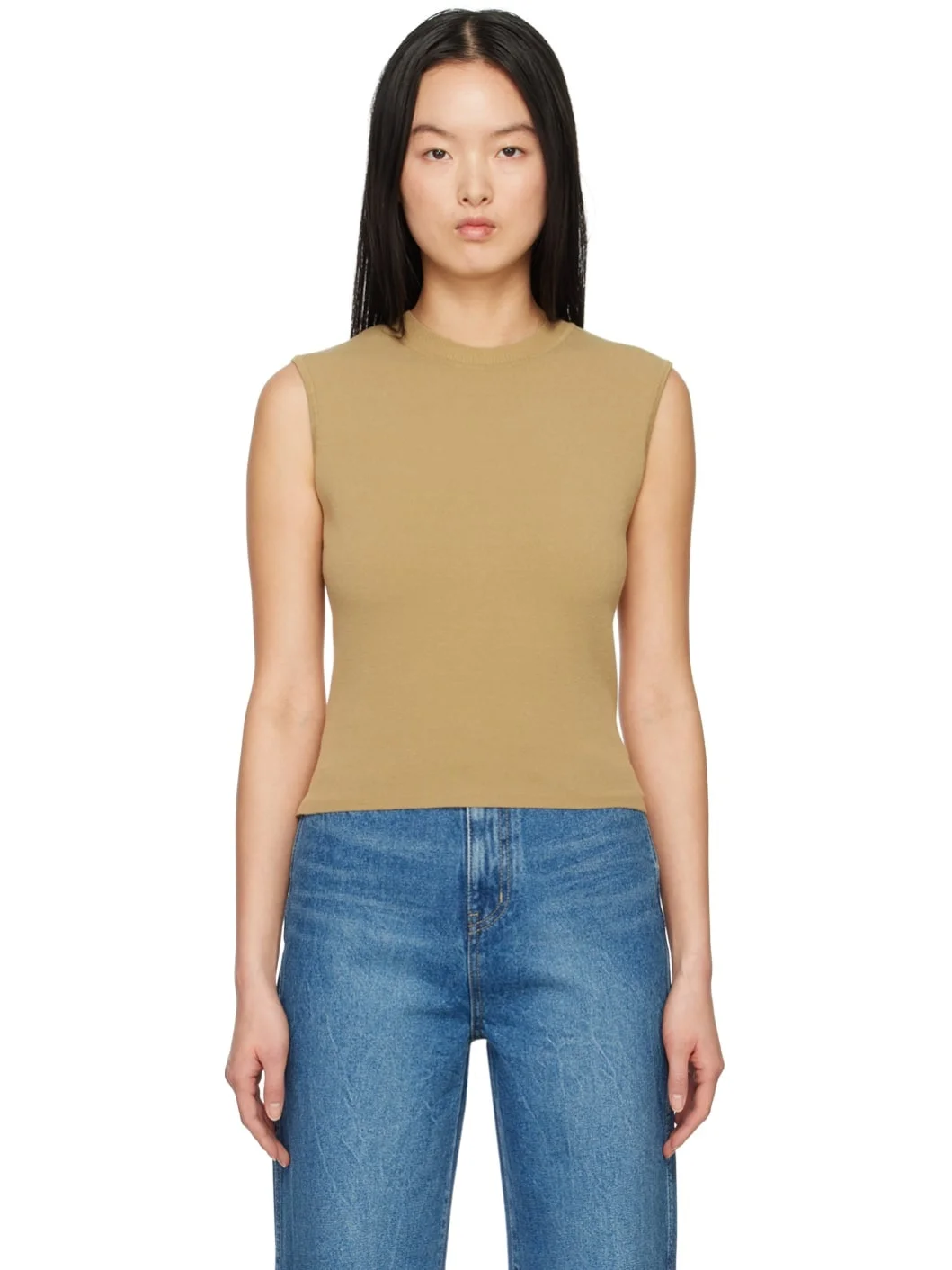 Knit viscose and polyester-blend tank top. · Rib knit crewneck · Cropped hem Supplier color: Olive brown 78% viscose, 22% polyester. Made in South Korea 231373F096004