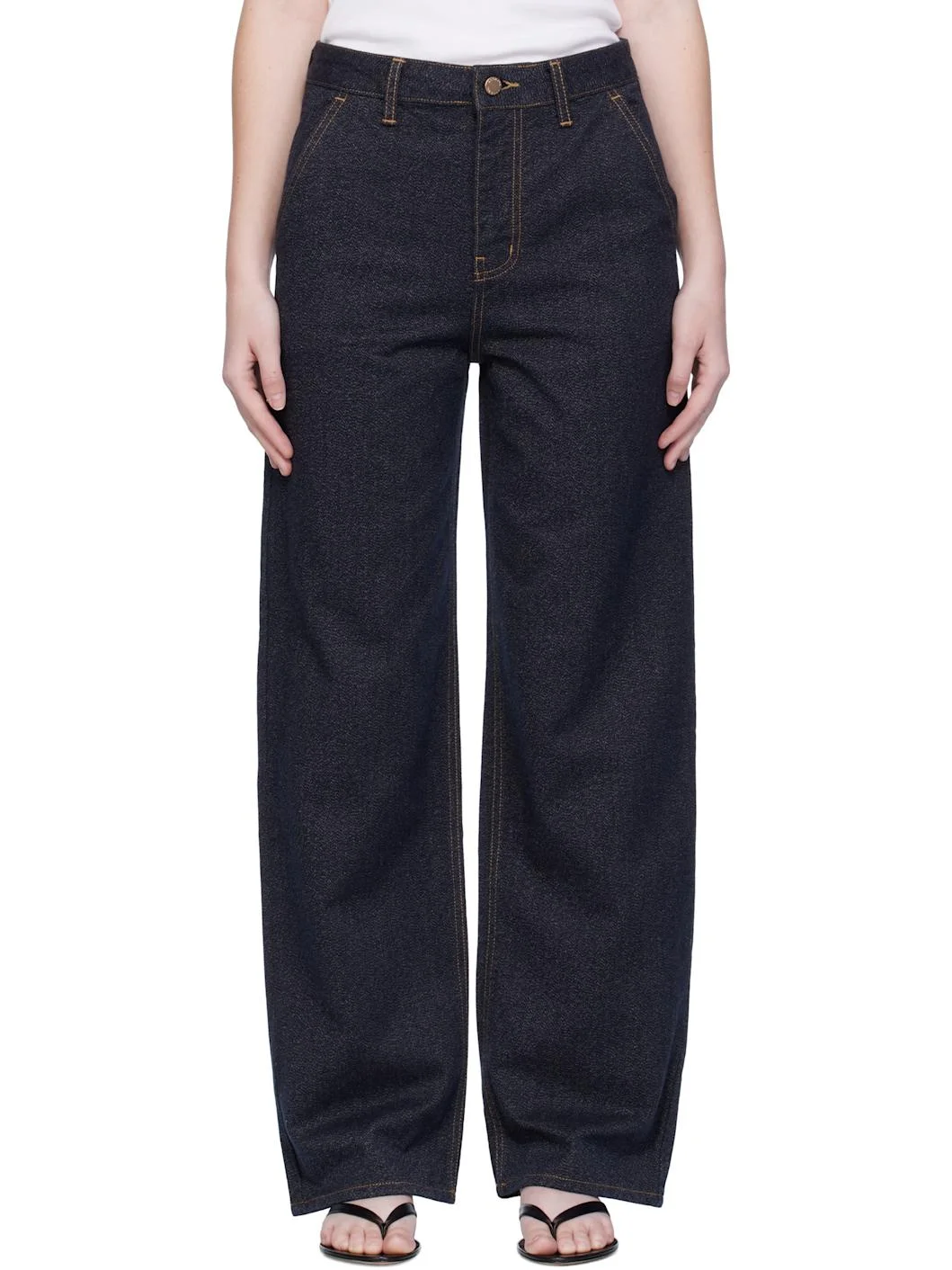 Non-stretch denim jeans. · Belt loops · Four-pocket styling · Zip fly · Logo patch at back waistband · Logo-engraved gold-tone hardware · Contrast stitching in tan Supplier color: Navy 100% cotton. Made in South Korea 252373F069000