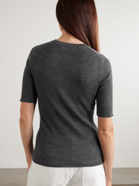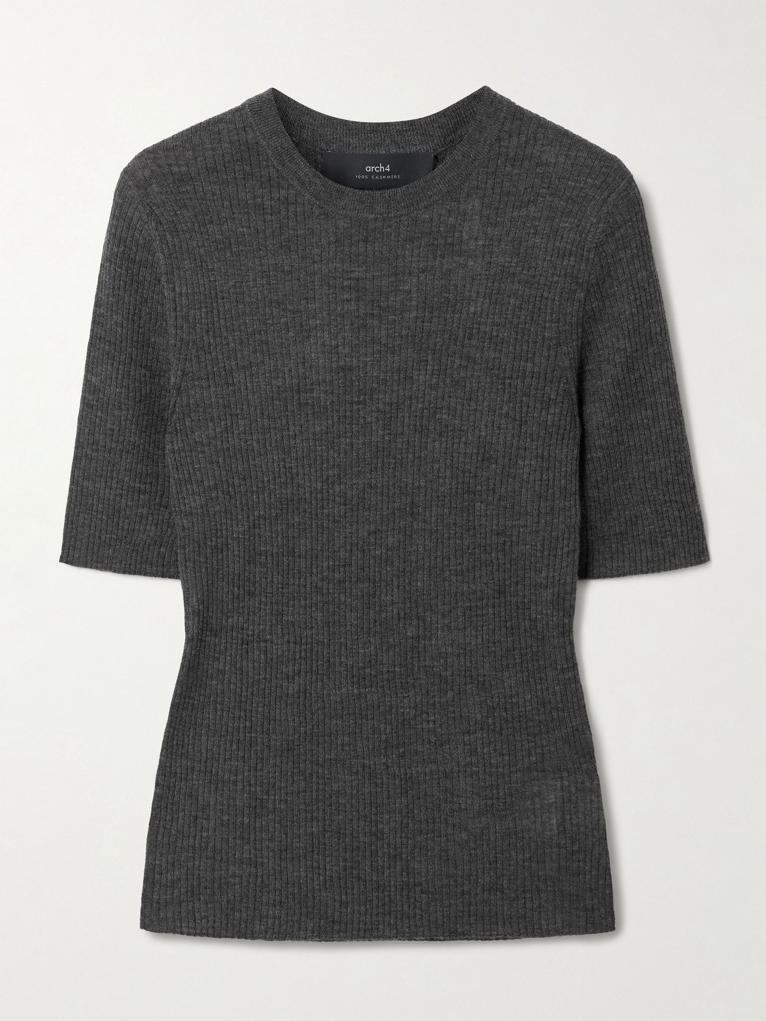 Arch4's beautifully made clothes are designed to be cherished for years to come. This 'Belsize' sweater is made from organic cashmere that feels incredibly soft and offers plenty of warmth. It has a tactile ribbed handle to enhance the slim fit. Lower-Impact Materials. This product is made using at least 50% lower-impact materials or ingredients. Find out more about our NET SUSTAIN criteria here. Size & Fit - Fits true to size, take your normal size - Designed for a slim fit - Lightweight knit - Model is 177cm/ 5'10" and is wearing a size Small Model measurements: - Bust: 85cm/ 33” - Waist: 66cm/ 26” - Hip: 92cm/ 36” Details & Care - Charcoal melange organic cashmere - Slips on - 100% organic cashmere - Dry clean