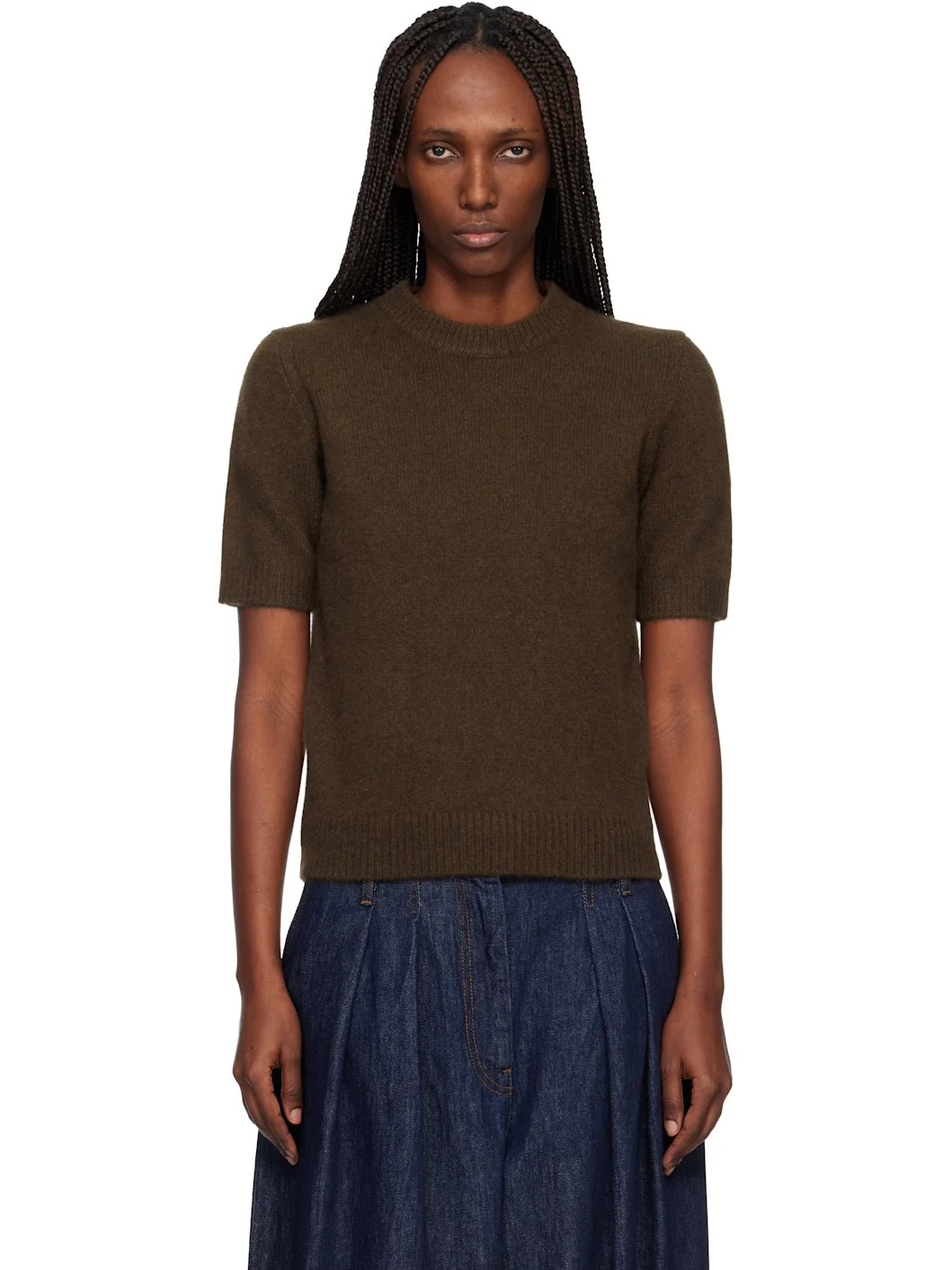 Knit GOTS-certified cashmere sweater. Rib-knit crewneck, hem, and cuffs. Supplier color: Brown chocolate marl 100% cashmere. Made in United Kingdom 261449F096000