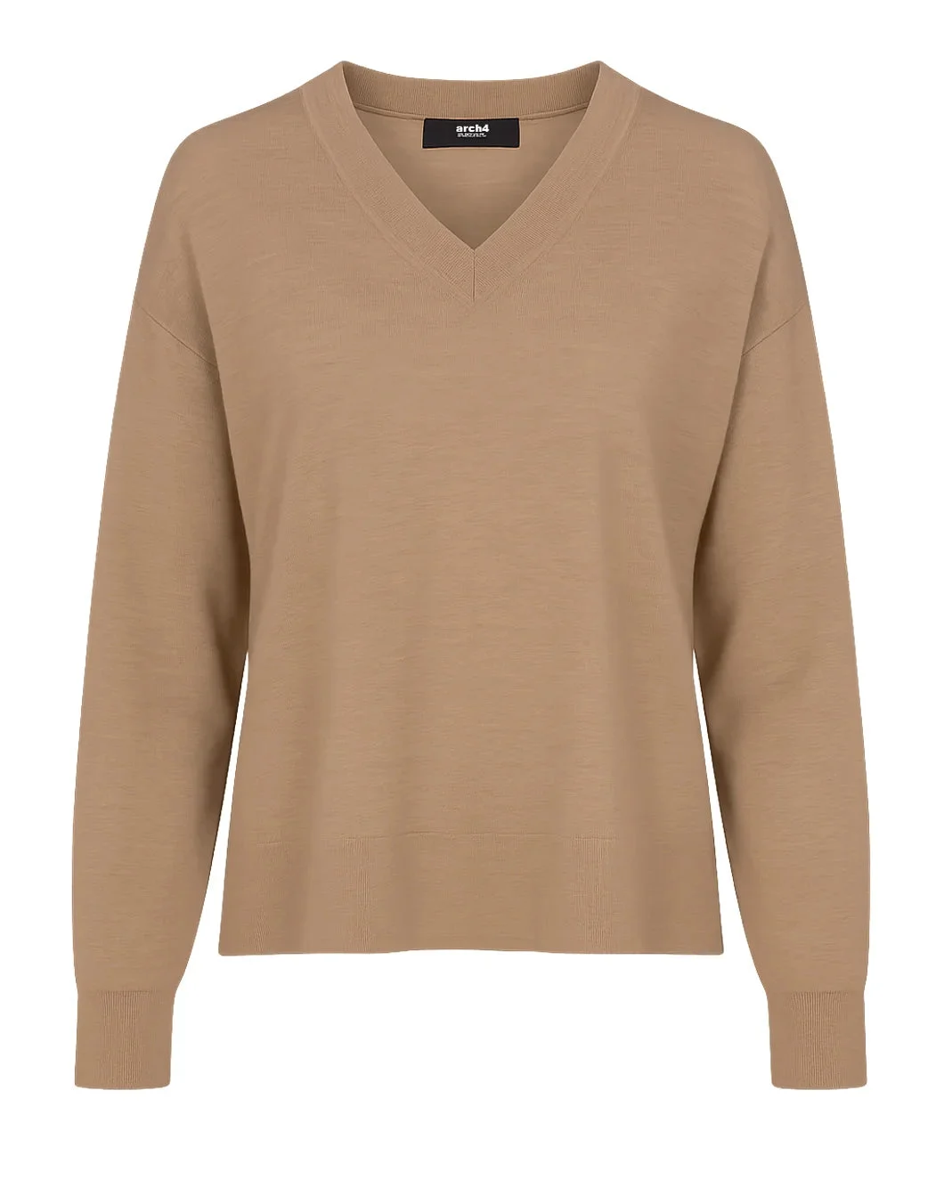 The Chiswick Top in Mink by Arch4 is a long sleeve, v-neck top crafted in a neutral, lightweight cashmere. - #KNJP25231