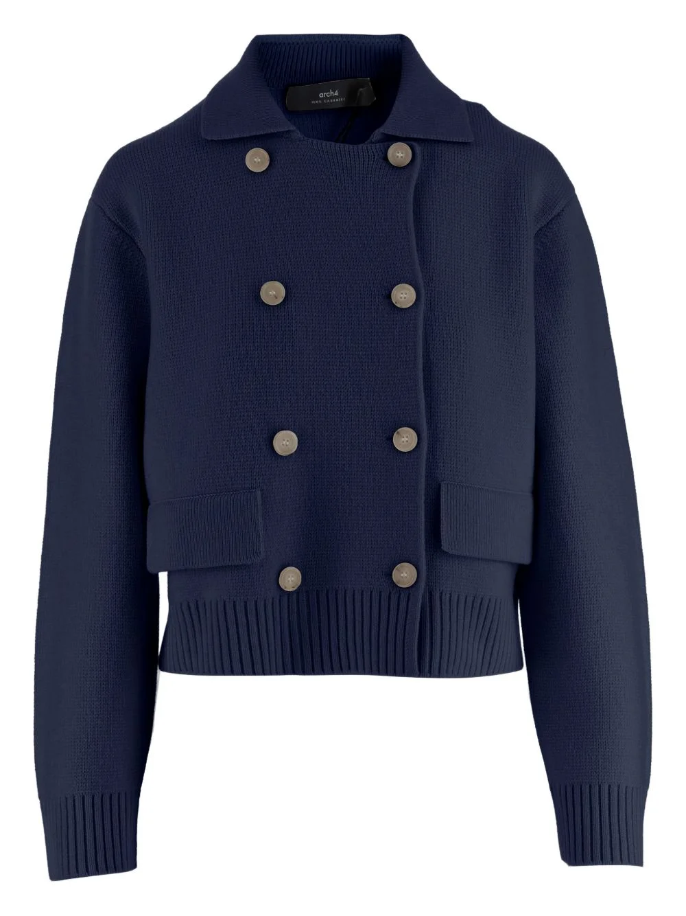 double-breasted cashmere knit jacket Highlights - Navy blue - Cashmere - Double-breasted - Front button closure - Classic collar - Ribbed hem Imported Composition Cashmere 100% Washing instructions Read Manufacturer Guidelines