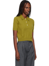 Knit GOTS-certified baby goat cashmere polo. · Rib-knit spread collar, hem, and cuffs · Three-button placket Supplier color: Caper green 100% baby goat cashmere. Made in United Kingdom 252449F108010
