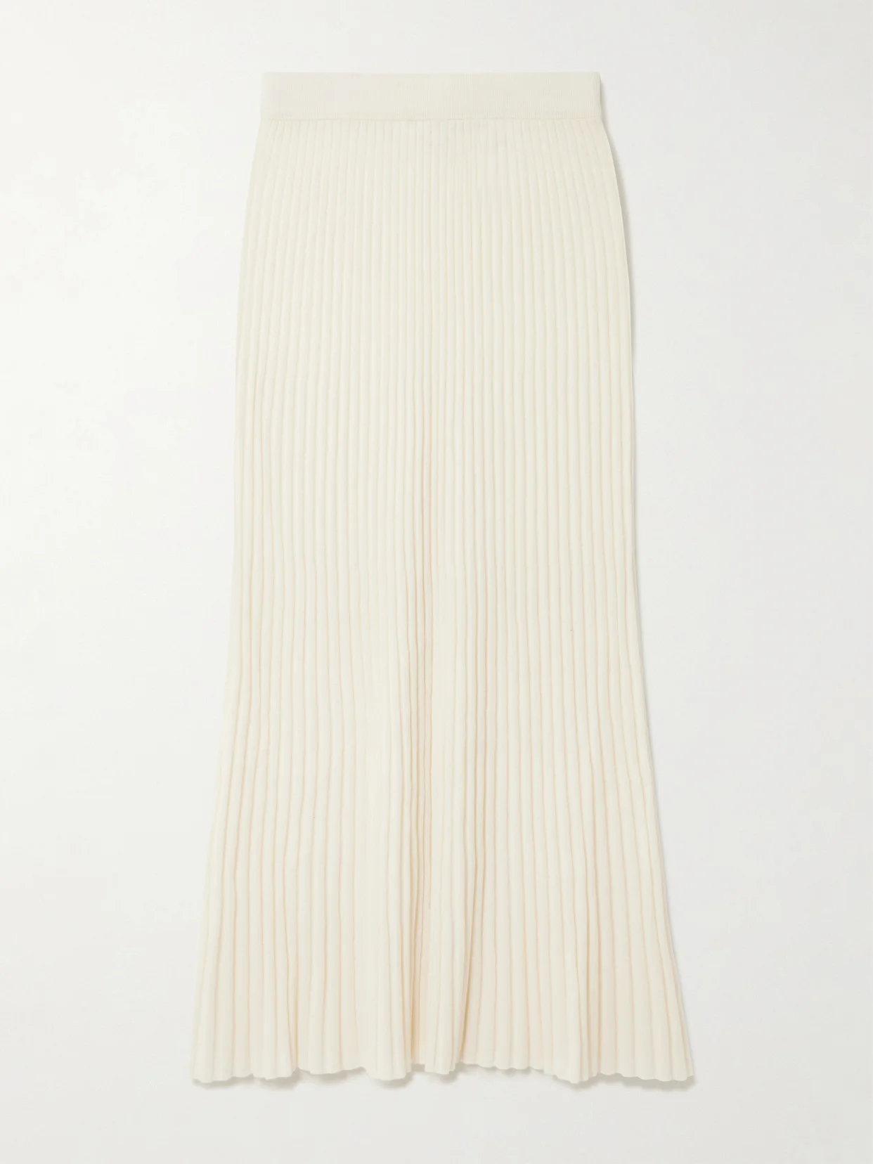 Nillie Ribbed Organic Cashmere Midi Skirt