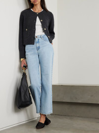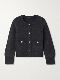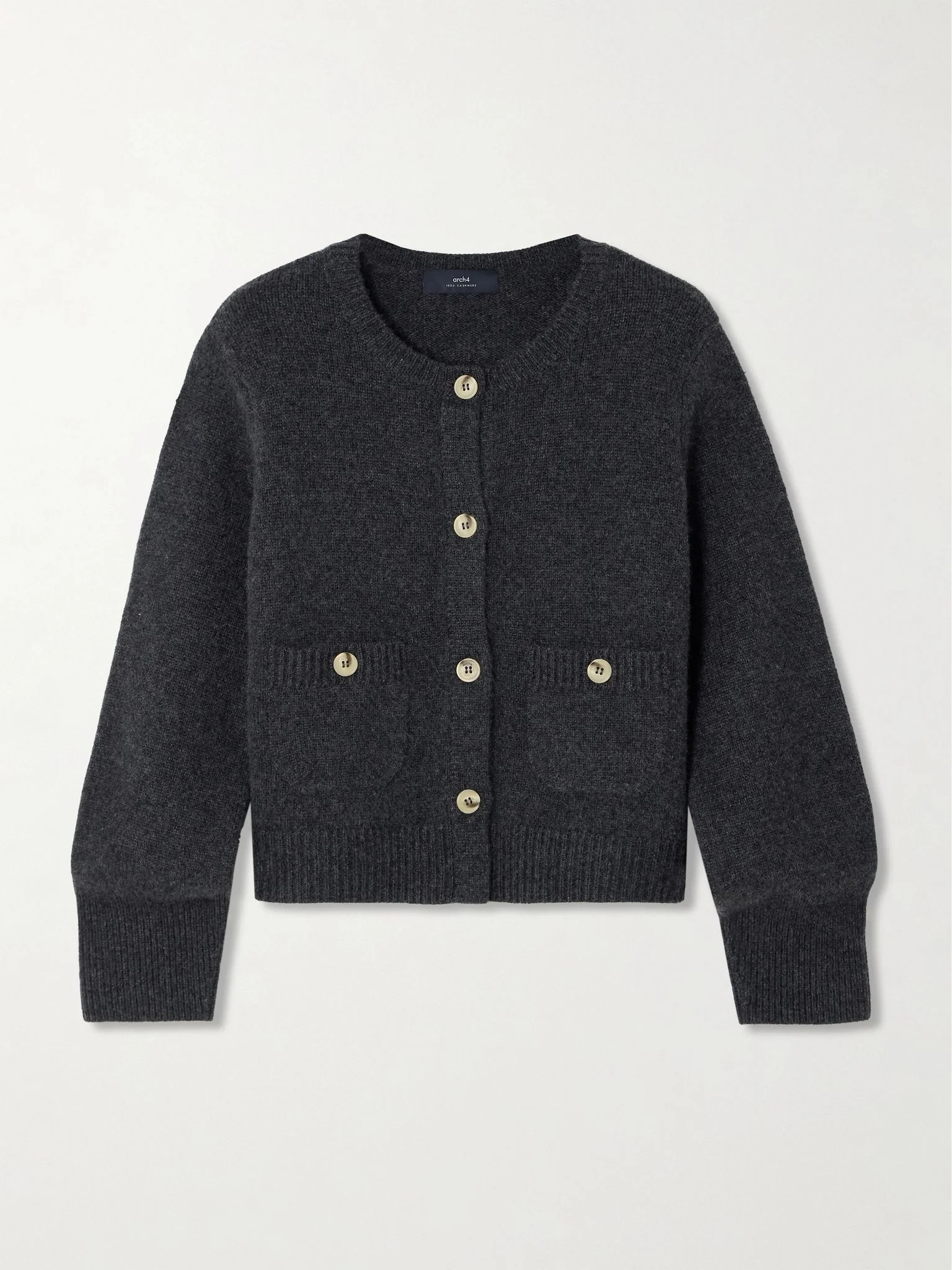 Arch4's chunky 'Rosanna' cardigan is knitted from luxurious cashmere chosen for its softness and warmth. It has subtle blouson sleeves and fastens with natural horn buttons. Layer it over a tank or tailored shirt, depending on your plans for the day. This product was created using Considered Materials and supports best practice in Animal Welfare. Find out more about NET SUSTAIN here. Size & Fit - Fits true to size, take your normal size - Designed for a slightly loose fit - Dropped shoulder seam - Mid-weight knit - Model is 180cm/ 5'11" and is wearing a size Small Model measurements: - Bust: 80cm/ 31.5" - Waist: 67cm/ 26" - Hip: 89cm/ 35" Details & Care - Dark-gray cashmere - Button fastenings through front - 100% cashmere; buttons: 100% horn (Buffalo) - Designer color: Charcoal