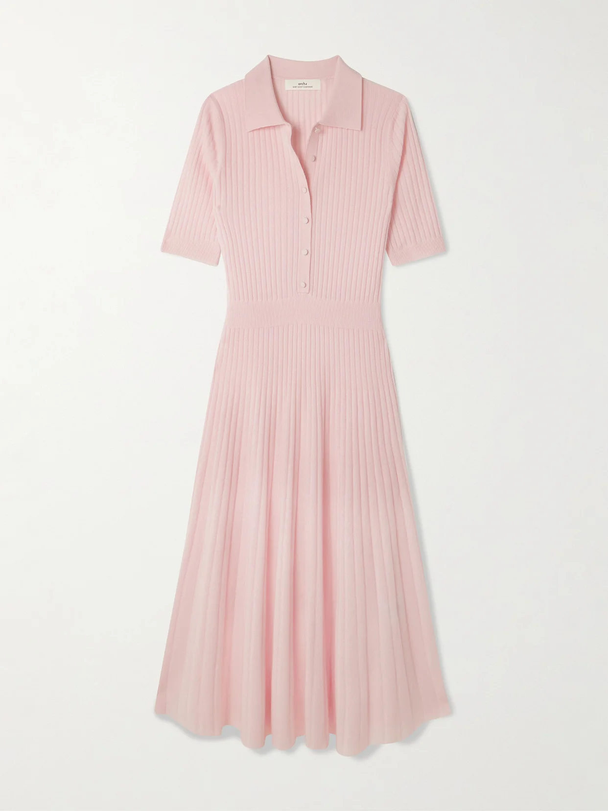 Arch4's 'Skylark' dress is classic and elevated, so you can style it for so many occasions. Made from certified organic cashmere, it's rib-knitted with a fitted polo top and a flared midi skirt. Style yours with a belt to add a little extra definition at the waist. Lower-Impact Materials. This product is made using at least 50% lower-impact materials or ingredients. Find out more about our NET SUSTAIN criteria here.