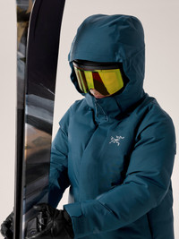 Warm, waterproof mid-thigh jacket for resort skiing and snowboarding. Dialed in for the unique demands of on-area skiing and snowboarding – including frigid lift rides – our warmest women’s resort jacket has goose down insulation, an extended mid-thigh length, and a PFAS-free GORE-TEX ePE fabric to seal out wind and snow. The lines are clean, the construction maximizes warmth, and features are extensive. An insulated adjustable hood fits over your helmet, multiple pockets offer storage, and a down-insulated collar wraps the neck for next-level warmth. This product is free of intentionally added PFAS. The new ePE membrane technology is lighter and thinner, but just as strong and durable as the materials we used before. You may notice the face fabric “wetting out” slightly faster in products with ePE membranes, but rest assured this does not affect the waterproofing of the membrane itself. If you notice the fabric wetting out faster than you’d like, simply wash the jacket and dry it to remove the oil contamination and bring the DWR back to its full power. Full Product Features Technical features - Waterproof - Windproof - Breathable - Durable Collar configuration - Soft, warm integrated down-insulated collar wraps the neck and seals out drafts Construction - Down Composite Mapping™ strategically places synthetic insulation in areas where moisture may buildup and down in areas for maximum warmth - Stitch-free bonded baffle construction adds durability, improves GORE-TEX integrity - 750 fill power European grey goose down provides lightweight, efficient warmth and is RDS (Responsible Down Standard) certified - PFAS-free GORE-TEX ePE with a recycled face delivers complete waterproof, windproof, breathable protection - Recycled GORE C-KNIT™ backer is quiet, soft next-to-skin, and highly breathable Design & Fit - Regular fit provides freedom of movement - Mid thigh length - Garment Centre Back Length: Size S is 32"/82cm - Varies by size Fabric treatment - FC0 DWR (Durable Water Repellent) finish repels moisture and is PFAS-free Hem configuration - Longer back hem provides coverage Hood configuration - Warm, comfortable PrimaLoft® Silver insulated hood provides full coverage, adjusts for a fine-tuned fit, fits over a helmet, and can be removed when not in use Patterning - Snowsport-specific articulated patterning for mobility and comfort Pocket configuration - Two hand pockets with zippers - Internal zippered pocket - One internal dump pocket - Sleeve pocket for RFID pass Snowsport features - Detachable powder skirt - RECCO® reflector aids search and rescue in emergency situations Sustainability - Shell - bluesign® approved material, dope dyed backer, recycled content - RDS (Responsible Down Standard) - 100% of our down is certified to the RDS by IDFL (No.TE-99950273) - Feather - This product contains feather not exceeding that allowable by law - PFAS (Per- and polyfluoroalkyl substances) Compliant Zippers & Fly configuration - Pit zippers with PowderGuard™ mesh backing, for easy venting without snow entry Materials - Down Insulation: 750 fill European grey goose down - 100% Grey Goose Down (minimum 90% down) - Synthetic Insulation: Coreloft™ Continuous, 91.5gsm, FC0 DWR - 100% Polyester - Lining: 20dx20d nylon ripstop w/DWR, 45gsm - 100% Nylon - Body: 80d 3L GORE-TEX ePE with C-KNIT™ backer, plain weave recycled nylon, FC0 DWR - 100% Nylon with ePE and PU Membrane - Origin of fabric: CHINA - Origin of dyeing: CHINA - May release plastic microfibres into the environment when washing