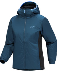 Warm-even-when-wet hoody you can hike, climb, tour, and live in. The Atom Hoody is the solution to your “which jacket should I wear?” problem. Wear it solo for chilly forest hikes with windy summits, climbing at the crag, and hanging at the campsite, or as a midlayer for touring and wet winter objectives. The Coreloft synthetic insulation stays warm even if you run into light weather, making it a better alternative to down for high-output days year round. What's been updated: Updated with a new FC0 material; the side panels and lining are now made with a recycled material as well. Updated fit, with a slightly wider collar and roomier sleeve opening, for improved mobility and layering. Need a lighter option? Try the Atom SL Hoody. Full Product Features Technical features - Moisture-resistant outer face fabric - Breathable - Lightweight - Compressible and packable - Wind resistant - Versatile Construction - Performance stretch fleece side panels give ventilation - Resilient Coreloft™ Compact 60 insulation is breathable, warm, and light, performs if wet, and delivers loft retention that resists packing out - Light, soft Tyono™ 20 is air permeable - Breathable 20D recycled nylon liner helps regulate temperature and is soft and comfortable next to the skin Cuff & Sleeves configuration - Stretch-knit cuffs Design & Fit - Fitted, with articulated patterning for mobility and comfort - Garment Centre Back Length: Size S is 26"/66cm - Varies by size Fabric treatment - FC0 DWR (Durable Water Repellent) finish repels moisture and is PFAS-free Hem configuration - Durable stitched hem with dual adjusters to seal out drafts Hood configuration - Adjustable, insulated, low profile StormHood™ with structured mini hood brim Patterning - Articulated patterning for unrestricted mobility - Gusseted underarms for mobility and comfort Pocket configuration - Two hand pockets with hidden zippers - Internal chest pocket with zip - Stows into its chest pocket and clips to carabiner for compact transport Sustainability - Contains materials that meet the bluesign® criteria - Contrast - recycled content - Insulation - bluesign® approved material, recycled content - Lining - bluesign® approved material, recycled content - Lining - dope dyed some colours, recycled content - PFAS (Per- and polyfluoroalkyl substances) Compliant Zippers & Fly configuration - No Slip Zip™ front zipper - Custom TPU zipper pulls are easy to operate and glove-friendly Materials - Contrast: Circular Knit Fleece, 215 gsm, FC0 DWR - 93% Polyester, 7% Elastane - Body: 20dx20d nylon ripstop, FC0 DWR, 45gsm - 100% Nylon - Synthetic Insulation: Coreloft™ 60 (60 g/m²) - 100% Polyester - Lining: 20d recycled nylon ripstop with FC0 DWR, 40gsm - 100% Nylon - Origin of fabric: JAPAN - Origin of dyeing: JAPAN - May release plastic microfibres into the environment when washing