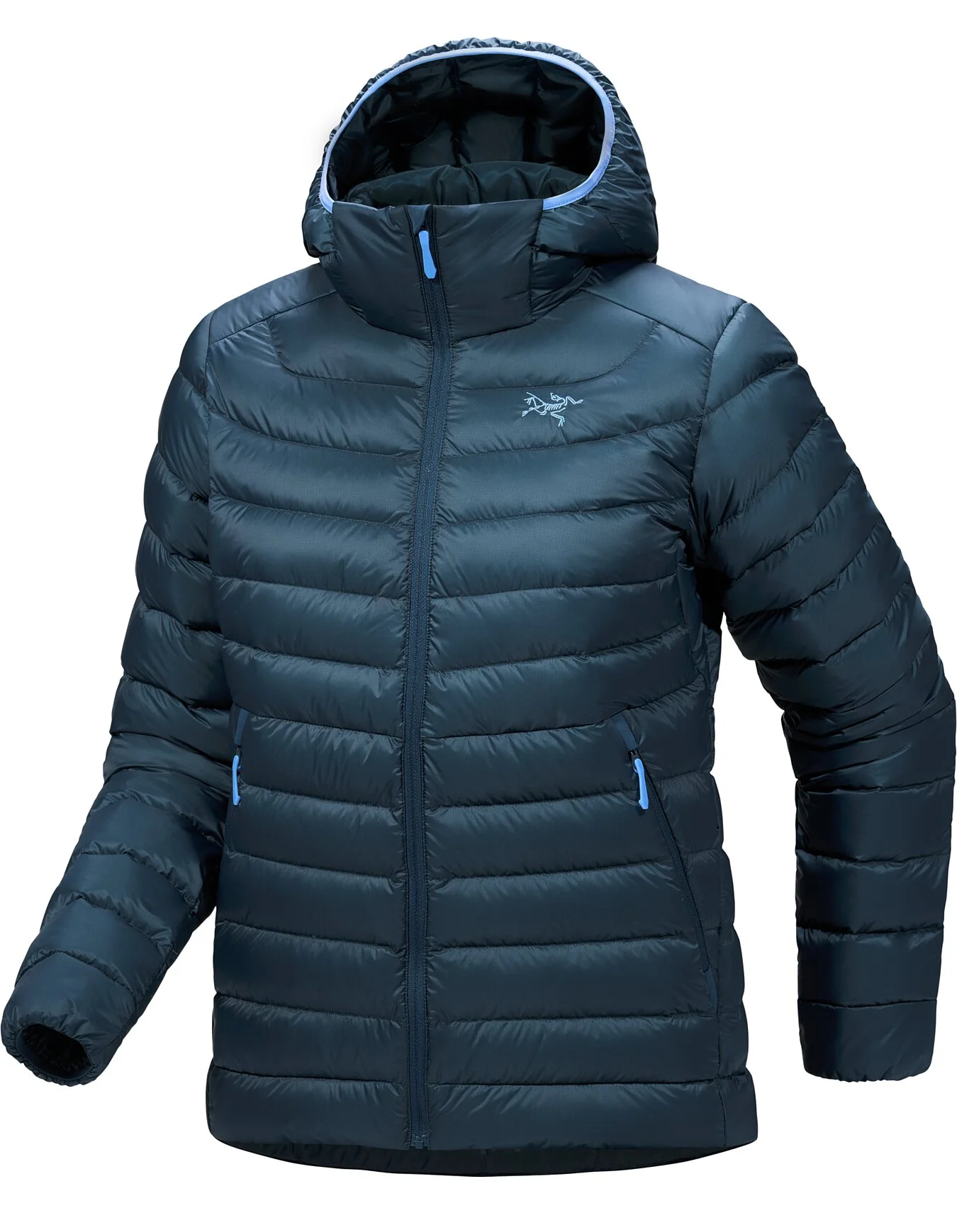 Light, warm down hoody shines as an alpine midlayer and versatile standalone. This product was previously the Cerium LT Hoody. The Cerium is a go-to for virtually any alpine undertaking. Taking it higher, we refined the design and sourced more sustainable materials while maintaining its exceptional warmth-to-weight ratio and packability. Responsibly-sourced 850 fill down – with Coreloft™ synthetic utilized in areas prone to moisture – provides premium insulation. The outer, recycled 15D Arato™ nylon with dope-dyed yarns, is light and durable. An insulated StormHood™ extends the warmth, and the streamlined ergonomic fit layers easily. As an alternative to down fill insulation, we also offer synthetic fill products, such as the Atom Hoody. Full Product Features Technical features - Moisture-resistant outer face fabric - Breathable - Great warmth-to-weight ratio - Lightweight - Compressible and packable - Wind resistant - Versatile Construction - Down Composite Mapping™ strategically places synthetic insulation in areas where moisture may buildup and down in areas for maximum warmth - 850 fill European white goose down for exceptional warmth-to-weight ratio - Recycled 15D Arato™ outer is light, durable, and coloured with dope dyed yarns - Downproof 20D plant-based Arato™ liner is exceptionally lightweight and reduces petroleum use Cuff & Sleeves configuration - Stretchy cuffs Design & Fit - Trim fit makes it an ideal layering piece - Garment Centre Back Length: Size S is 24"/62cm - Varies by size Fabric treatment - FC0-DWR (Durable Water Repellent) finish repels moisture Hem configuration - Adjustable hem draw cord seals out drafts Hood configuration - Adjustable, insulated StormHood™ - Helmet compatible - Single pull adjuster does not restrict vision Patterning - Articulated patterning for unrestricted mobility Pocket configuration - Included mini stuff sack with drawcord closure - Two hand pockets with zippers - Zippered internal security pocket Zippers & Fly configuration - TPU zipper-pulls reduce noise and are easy to grab - Reverse coil centre-front zipper improves durability and creates a streamlined profile Materials - Synthetic Insulation: Coreloft™ 80 (80 g/m²) - 100% Polyester - Down Insulation: 850 fill European white goose down, min 90/10, RDS - 100% White Goose Down (minimum 90% down) - Lining: Arato™ 20 - 100% Nylon - Body: Arato™ 15, recycled N6 microrip, jigger dyed - 100% Recycled Nylon - Origin of fabric: JAPAN - Origin of dyeing: JAPAN - May release plastic microfibres into the environment when washing