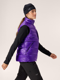 1000 fill-power down vest delivering outstanding warmth for minimal weight. Our best warmth-to-weight ratio in a durable, packable alpine vest for core warmth in severe cold. High-loft 1000-fill goose down provides lightweight, packable insulation with Coreloft™ utilized in areas prone to moisture. The 100%-recycled 20D Pertex® Diamond Fuse outer is light, windproof, and has a diamond-filament construction that adds durability without adding weight. Multiple pockets – inside and out – offer storage, and a stuff sack is included for transport. Full Product Features Technical features - Moisture-resistant outer face fabric - Breathable - Great warmth-to-weight ratio - Lightweight - Compressible and packable - Durable - Wind resistant Construction - Ultra-lofty premium 1000 fill grey goose down delivers exceptional warmth for its weight - Downproof 20D plant-based Arato™ liner is exceptionally lightweight and reduces petroleum use - Down Composite Mapping™ strategically places 100% recycled polyester Coreloft™ Silver synthetic insulation in moisture-prone areas - Windproof, downproof 20D Pertex® Diamond Fuse mini-ripstop outer is made from 100% recycled nylon and utilizes a unique diamond-filament construction for durability Design & Fit - Regular fit provides freedom of movement - Garment Centre Back Length: Size S is 24"/62cm - Varies by size Hem configuration - Adjustable hem draw cord seals out drafts Integrated features - Includes stuff sack for compact transport Patterning - Articulated patterning for unrestricted mobility Pocket configuration - Two hand pockets with zippers - Chest pocket - Two internal dump pockets Sustainability - Contains materials that meet the bluesign® criteria - Shell - bluesign® approved material, recycled content - Padding - bluesign® approved material, recycled content - Lining - bio-derived material - RDS (Responsible Down Standard) - 100% of our down is certified to the RDS by IDFL (No.TE-99950273) - Feather - This product contains feather not exceeding that allowable by law - PFAS (Per- and polyfluoroalkyl substances) Compliant - Sterilization Permit Number- PER. NO. PA-8811 (CA) Zippers & Fly configuration - Two-way front zipper Materials - Lining: Arato™ 20 - 100% Nylon - Down Insulation: 1000 fill grey goose down, min 90/10, RDS - 100% Grey Goose Down (minimum 90% down) - Body: Pertex® Diamond Fuse 20d ripstop, downproof, FC0 DWR, 38gsm - 100% Nylon - Synthetic Insulation: Coreloft™ Silver Insulation with PURE Technology, 40gsm - 100% Polyester - Synthetic Insulation: Coreloft™ Silver Insulation with PURE Technology, 80gsm - 100% Polyester - Origin of fabric: JAPAN - Origin of dyeing: JAPAN - May release plastic microfibres into the environment when washing
