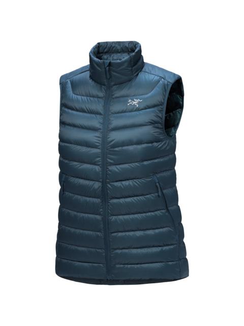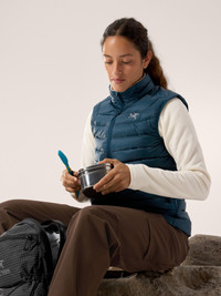 Light, warm down vest shines as an alpine midlayer and versatile standalone. This product was previously the Cerium LT Vest. Weighing just grams and packing smaller than a grapefruit, the Cerium Vest performs as a minimalist’s alpine midlayer or standalone in cool, dry conditions. Responsibly-sourced 850 fill down – with Coreloft™ synthetic utilized in areas prone to moisture – provides premium insulation, and the recycled 15D Arato™ nylon outer is light and durable. Streamlined in its design, it layers comfortably under a shell and easily fits into its included stuff sack for compact transport. Full Product Features Technical features - Moisture-resistant outer face fabric - Breathable - Lightweight - Compressible and packable - Wind resistant - Versatile Collar configuration - High collar adds warmth Construction - Down Composite Mapping™ strategically places synthetic insulation in areas where moisture may buildup and down in areas for maximum warmth - 850 fill European white goose down for exceptional warmth-to-weight ratio - Recycled 15D Arato™ outer is light, durable, and coloured with dope dyed yarns - Downproof 20D plant-based Arato™ liner is exceptionally lightweight and reduces petroleum use Design & Fit - Garment Centre Back Length: Size S is 24"/62cm - Varies by size Hem configuration - Adjustable hem draw cord seals out drafts Integrated features - Includes stuff sack for compact transport Patterning - Articulated patterning for unrestricted mobility Pocket configuration - Two hand pockets with zippers - Zippered internal security pocket Zippers & Fly configuration - TPU zipper-pulls reduce noise and are easy to grab - Reverse coil centre-front zipper improves durability and creates a streamlined profile Materials - Synthetic Insulation: Coreloft™ 80 (80 g/m²) - 100% Polyester - Down Insulation: 850 fill European white goose down, min 90/10, RDS - 100% White Goose Down (minimum 90% down) - Lining: Arato™ 20 - 100% Nylon - Body: Arato™ 15, recycled nylon microrip - 100% Nylon - Origin of fabric: JAPAN - Origin of dyeing: JAPAN - May release plastic microfibres into the environment when washing