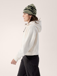 Natural-fibre climbing midlayer with a full zip. A classic silhouette in hardworking fleece, the full-zip Emblem Hoody is a midweight solution for short approaches, cool-weather sessions, and the start-stop rhythm of climbing. A generous fit provides ease of movement, while thumb loops and a bungee hood cord let you customize airflow for a wide range of temperatures. Full Product Features Technical features - Breathable - Warm and comfortable Cuff & Sleeves configuration - Thumb loops for easy wear over or under other layers Design & Fit - Cropped length design - Garment Centre Back Length: Size S is 20"/50cm - Varies by size Hood configuration - Adjustable hood drawcords Logos & Label configuration - Arc'teryx bird and word logo placed on chest Sustainability - Contains materials that meet the bluesign® criteria - PFAS (Per- and polyfluoroalkyl substances) Compliant - Body - organic cotton, bluesign® approved material - Contrast - organic cotton, bluesign® approved material - Lining - organic cotton, bluesign® approved material Zippers & Fly configuration - Full front zip Materials - Lining: Organic Pima Cotton Jersey, 160gsm - 100% Cotton - Body: Cotton poly circular knit fleece solid, 300gsm - 81% Cotton, 19% Polyester - Origin of fabric: THAILAND - Origin of dyeing: THAILAND - Origin of Manufacture: SRI LANKA