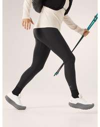 Stretch, breathability, and pockets in a versatile tight for high-output activities. Great for runs, hikes, and high-speed adventures, these are everything you want your all-mountain leggings to be. Plus, pockets. The Chira material is abrasion resistant, breathable, and has excellent stretch. Secure and bounce-free, the 360° stretch-mesh waistband pocketing holds gels and smaller essentials. A zippered security pocket and easy-access thigh pockets add more storage. Mesh panels at the lower leg ventilate, a wicking finish manages moisture, and seam placement maximizes comfort. Full Product Features Technical Features - Moisture-wicking - Breathable - Durable - Versatile - Antimicrobial Construction - Flatlock seam construction improves next-to-skin comfort - Merrow stitch seam construction reduces seam size and irritation - High elastane content utilizes black lycra for great stretch and recovery with minimal show-through - Durable nylon knit withstands extended use against rock - Mesh panels in key areas add ventilation Design & Fit - Next-to-skin fit for comfort and easy layering Logos & Label Configuration - Reflective logo adds visibility in low light situations Patterning - Articulated patterning for unrestricted mobility Pocket Configuration - Two thigh pockets - One zippered security pocket Sustainability - Contains materials that meet the bluesign® criteria - Biocidal Disclosure - This model was treated with an anti-odour biocidal product (Active Ingredient: Silver Nitrate) - PFAS (Per- and polyfluoroalkyl substances) Compliant Waist & Belt Configuration - Highrise, wide waistband - Drawcord provides a secure, comfortable fit - Bounce-free 360 degrees stretch-mesh waistband storage holds gels and smaller items Materials - Body: Nylon 66 stretch interlock with Black (or Clear) lycra, silvadur & wicking finishing, 220gsm - 71% Nylon, 29% Elastane - Contrast: Nylon power stretch warp knit mesh, 150gsm - 74% Nylon, 26% Elastane - French Regulation: AGEC Law - Article 13 - Origin of fabric: TAIWAN - Origin of dying: TAIWAN - May release plastic microfibres into the environment when washing