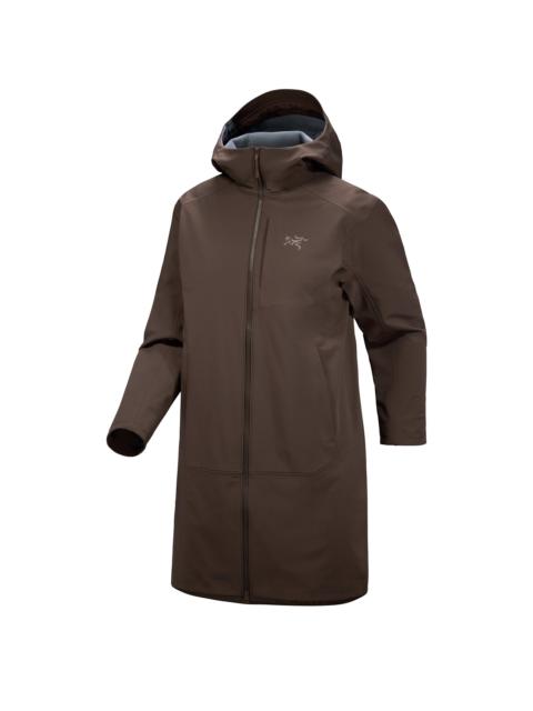 Weather-resistant softshell coat for mid-output missions in chilly conditions. This product was previously the Gamma Heavyweight Coat. Our warmest and longest jacket in the Gamma family, this coat offers extra coverage that means there's zero chance of wind getting at your midsection. Built for day hikes and mixed conditions, it’s built to keep you comfortable when the forecast calls for cold. Side vents in the hem, a two-way zipper, and strategic articulation in the body give this coat full range of motion for a full day's pursuits. What's been updated: Updated, roomier fit for improved comfort over insulation layers. DWR (Durable Water Repellent) is free from intentionally added PFAS. Full Product Features Technical features - Weather resistant - Breathable - Lightweight - Durable Construction - Hardwearing Fortius™ 2.0 softshell fabric has increased warmth to weight ratio and durability, with wind resistance and a DWR finish - Taped seams for weather resistance, a low-profile finish, and added strength Cuff & Sleeves configuration - Shaped cuffs with partial elastic provide coverage and seal out drafts Design & Fit - Regular fit provides freedom of movement with room for layers - Lands just above the knee for extended coverage - Garment Centre Back Length: Size S is 36"/92cm - Varies by size - Side hem vent for improved mobility and freedom of stride Fabric treatment - DWR (Durable Water Repellent) finish repels moisture and is PFAS-free Hood configuration - Adjustable StormHood™ Patterning - Articulated patterning for unrestricted mobility Pocket configuration - Two hand pockets with zippers - Chest pocket Sustainability - Shell - bluesign® approved material - Contrast - bluesign® approved material, recycled content - Lining - bluesign® approved material, recycled content - PFAS (Per- and polyfluoroalkyl substances) Compliant Zippers & Fly configuration - Full separating two-way front zip Materials - Contrast: Recycled nylon/spandex plain weave with FC0 DWR, 126gsm - 95% Nylon, 5% Elastane - Lining: Recycled Polyester Brushed Pocket Mesh, 158gsm - 100% Recycled Polyester - Body: Fortius™ 2.0 - 60D Synthetic Stretch Softshell with poly fleece backer, 233gsm, FC0 DWR - 84% Nylon, 16% Elastane 100% Polyester Backing - Origin of fabric: TAIWAN, CHINA - Origin of dyeing: TAIWAN, CHINA - May release plastic microfibres into the environment when washing