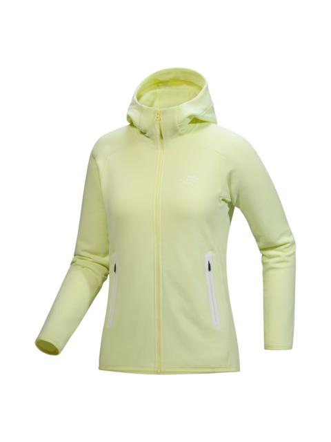 Comfort in motion – stretch fleece hoody for low-to-medium-output mountain activities. Ski tours, fall mornings at camp, chilly days bouldering – the warmest Kyanite’s thermal performance, durability, and soft comfort let it shine as a midlayer or standalone. Polartec Power Stretch Pro has a nylon face for abrasion resistance, and its four-way stretch combines with articulated patterning for exceptional freedom of movement. The streamlined fit layers easily under a shell, a low-profile ScubaHood adds warmth, and the soft brushed interior wicks moisture. Updated with a more streamlined fit for easier layering, an internal key pocket, and a design that facilitates repair. Full Product Features Technical Features - Moisture-wicking - Durable - Versatile Construction - Merrow and flatlock seam constructions reduce bulk and enhance comfort - Polartec® Power Stretch® Pro fleece combines a highly durable nylon face with a soft, comfortable, brushed polyester interior made with recycled content Cuff & Sleeves Configuration - Cuffs bound with durable Tanica™ stretch fabric - Raglan sleeve layers comfortably and improves freedom of movement Design & Fit - Fitted, with articulated patterning for mobility and comfort - Garment Centre Back Length: Size S is 26"/65cm - Varies by size Hem Configuration - Hem bound with durable Tanica™ stretch fabric Hood Configuration - Snug, comfortable low-profile hood hugs the head for added warmth Pocket Configuration - Two hand pockets with laminated zippers - One mesh key pocket Sustainability - Contains materials that meet the bluesign® criteria - Biocidal Disclosure - This model was treated with an anti-odour biocidal product (Active Ingredient: Silver Nitrate) - PFAS (Per- and polyfluoroalkyl substances) Compliant Materials - Body: Power Stretch PRO Nylon Jersey/Cationic Dyed Recycled Polyester Velour, 248gsm - 53% Polyester, 38% Nylon, 9% Elastane - Origin of fabric: UNITED STATES - Origin of dying: UNITED STATES - May release plastic microfibres into the environment when washing